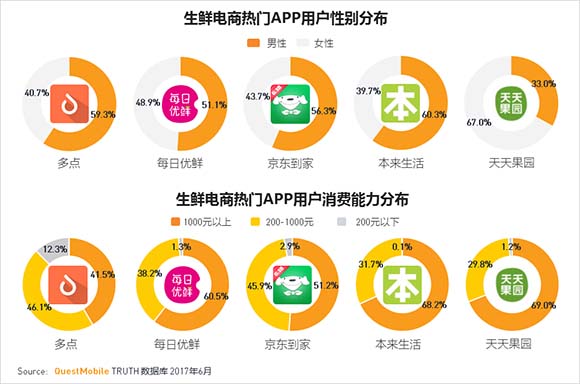 热门生鲜电商APP的用户消费能力普遍较强,在生鲜电商的消费上,男性不输女性。