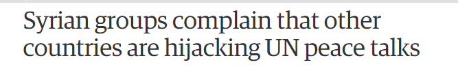【叙利亚民间组织抱怨外部力量过多干涉和平谈判】160个叙利亚民间社会团体在给联合国特使的一封公开信中表示,联合国安排的叙利亚和平谈判因为外部干涉过多而失败,抱怨联合国允许外部力量制定谈判的优先事项和发展方向,使得和平谈判被劫持。