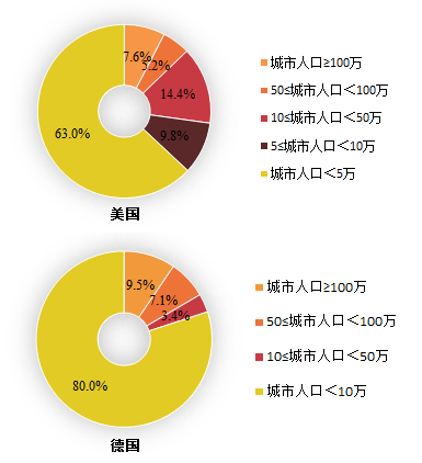 图2:美国、德国城市及人口分布统计