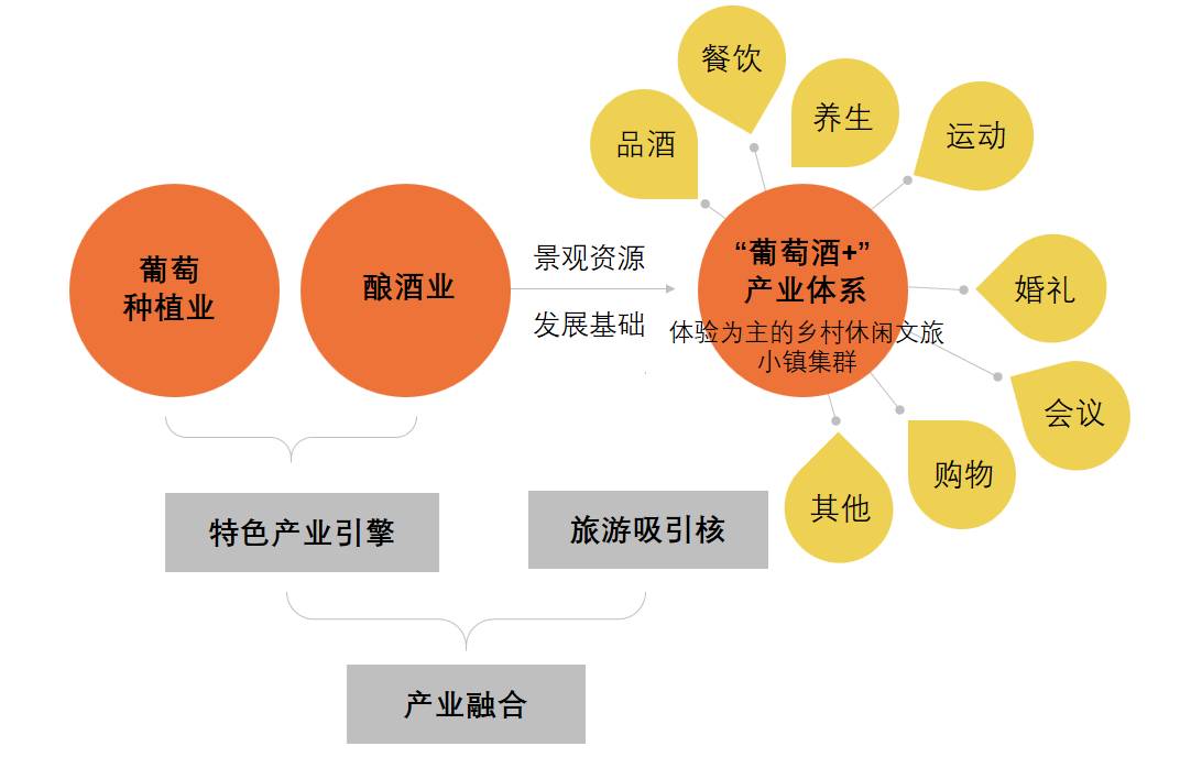 以美国纳帕谷为例,其多样性微气候非常利于种植优良的酿酒葡萄,形成了葡萄种植业和酿酒业等特色引擎产业,在此基础上采取政企合作成立旅游业提升区、成立非盈利组织进行统一管理模式,并通过PPP模式进行项目融资、招商引资及旅游宣传推广等方式发展地方旅游业,打造包括品酒、餐饮、养生、运动、婚礼、会议、购物及各类娱乐设施在内的“葡萄酒+”旅游吸引核,形成综合性乡村休闲文旅小镇集群,2016年接待国内外游客350万,为当地政府带来税收超8000万美元。
