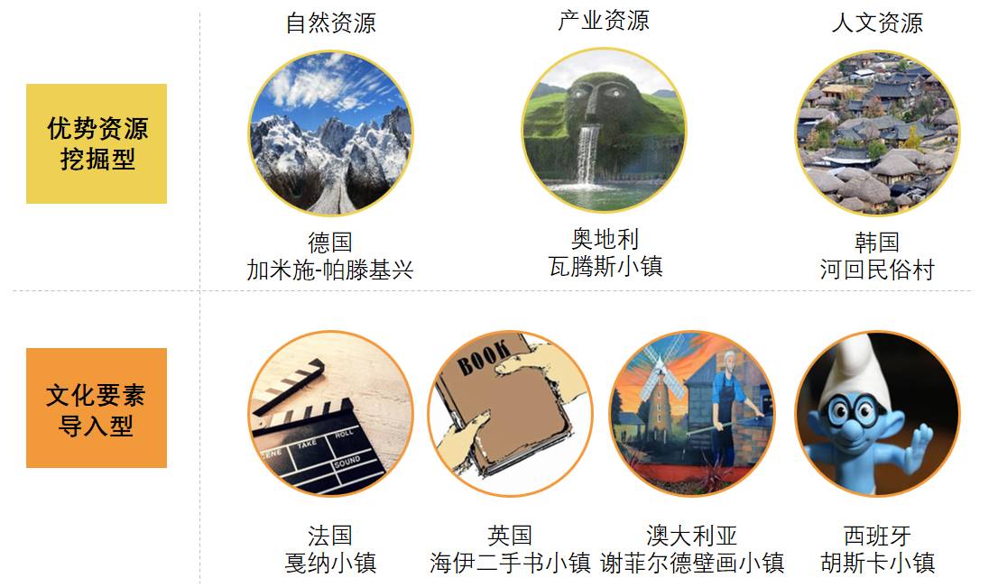 以大城市为依托的文旅型特色小镇:同样位于大城市轨道交通1-2小时的交通圈内,挖掘稀缺、核心的自然、历史资源要素,打造独特的旅游产业链,从而吸引大城市居民及来自世界各地的游客,例如: