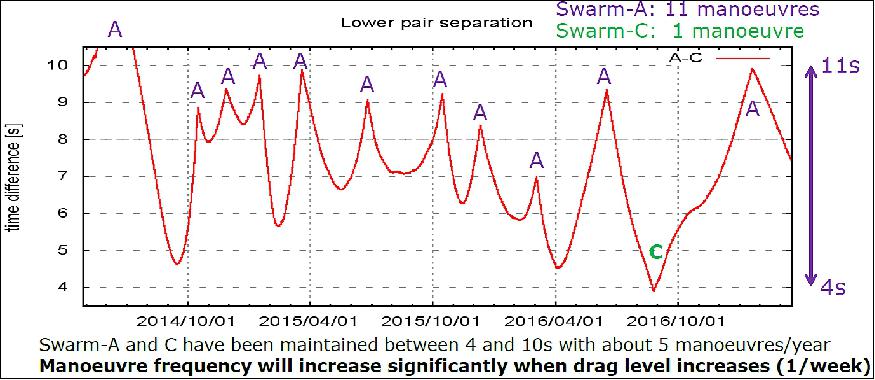 (笔者研究的Swarm卫星两年内经历了12次大的轨道机动,以防止两颗卫星彼此以及和太空垃圾相撞©European Space Agency)
