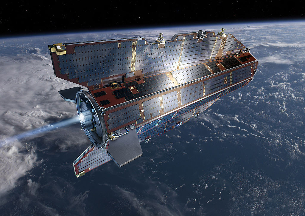 (采用了电推进的GOCE卫星,甚至可以飞在距离地面仅250千米的轨道,电推可以持续克服空气阻力©European Space Agency)