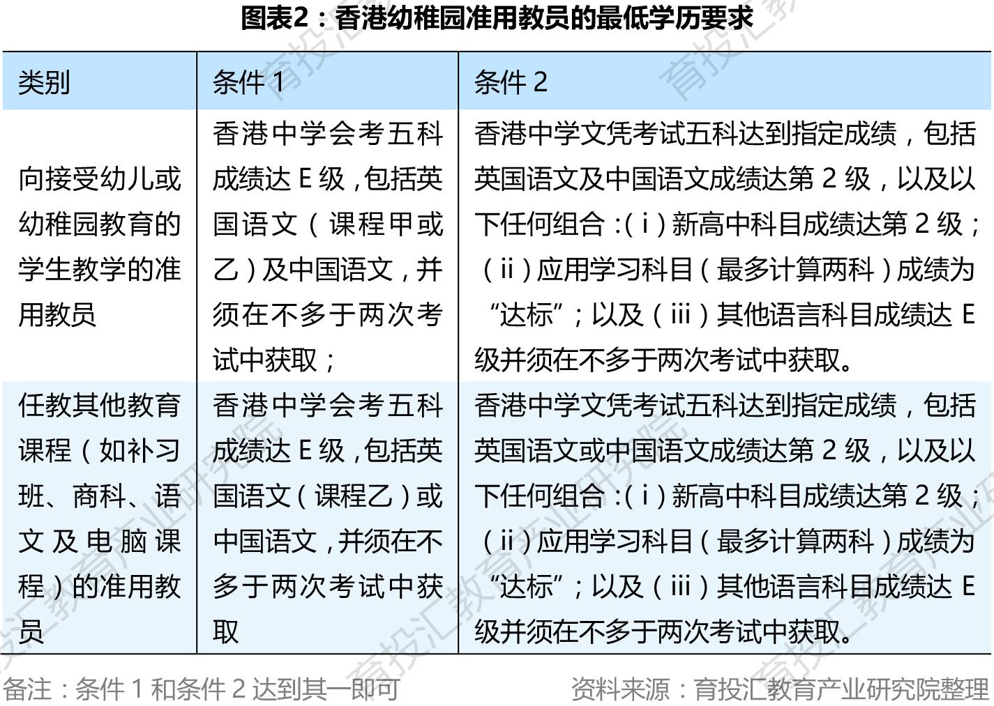 根据香港教育局通知,由2003年9月1日起,所有新入职幼稚园教师均须具备合格幼稚园教师或同等的资历。现职并已在2003年9月1日前获发准用教员许可证的未受训幼稚园教师,可继续在其目前任职的幼稚园任教;但日后若她/他们离职或调职,则须具备合格幼稚园教师或同等的资历,才可受聘为另一所幼稚园的教师。