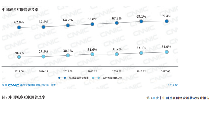 8月4日下午,中国互联网络信息中心(CNNIC)发布了2017年度的《中国互联网络发展状况统计报告》。自 1997 年至今,CNNIC 已成功发布 39 次全国互联网发展统计报告,本次是第 40 次报告。