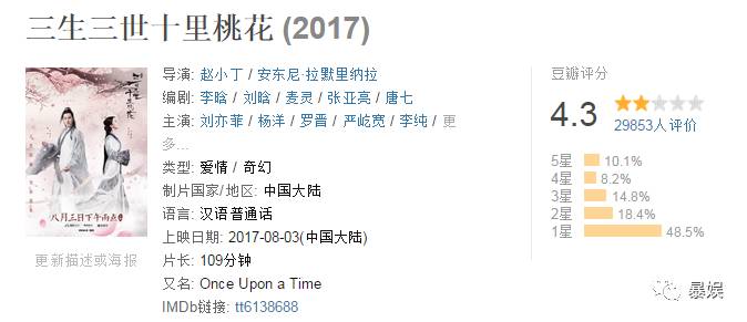 由杨幂与赵又廷主演的电视剧版《三生三世十里桃花》在年初大火了一把,杨洋、刘亦菲主演的电影版《三生三世十里桃花》也赶在暑假档上映,由于本身原著的自带热度、观众对两位高颜值主演的期待,那么同一个“妈”生的电影版是否会如电视剧版再虐观众一回呢?