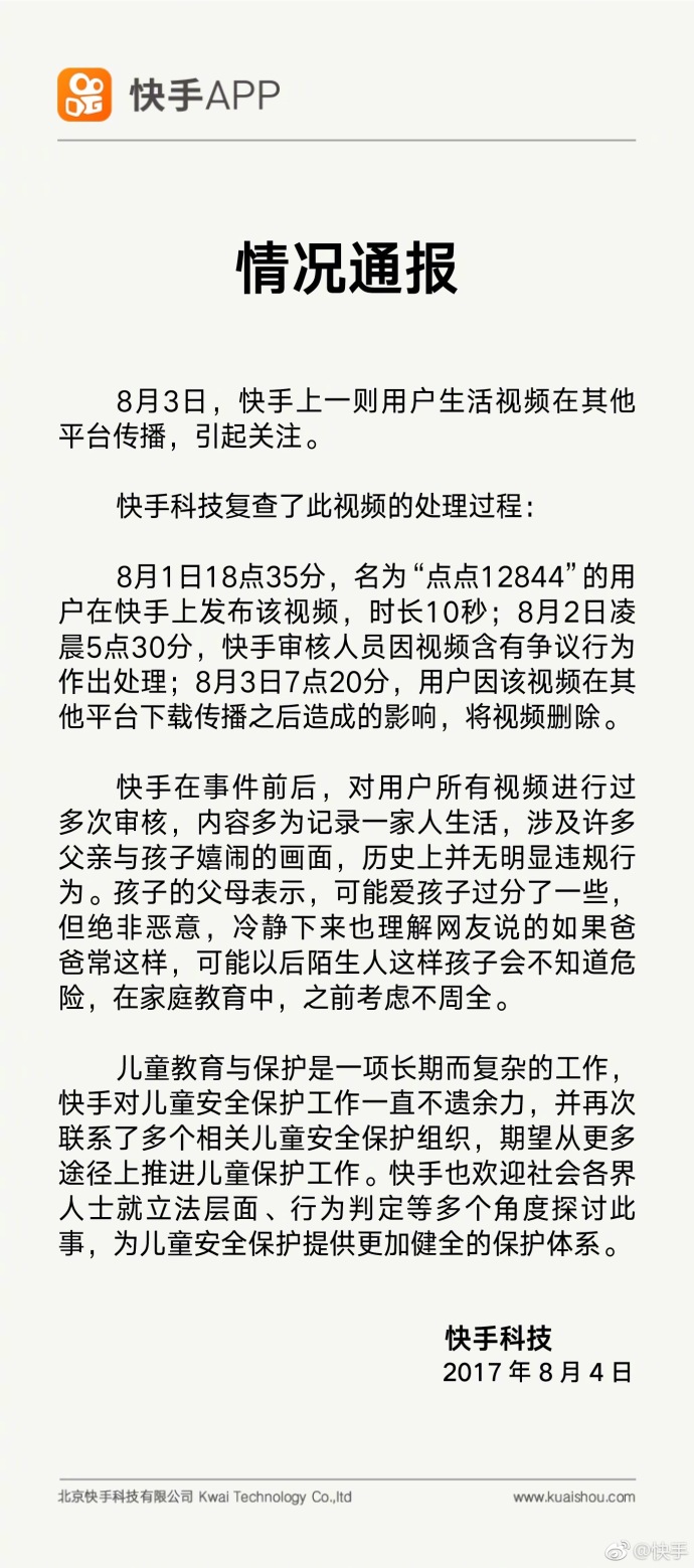 8月3日,一条快手视频因涉嫌猥亵女童而在微博上广为传播。