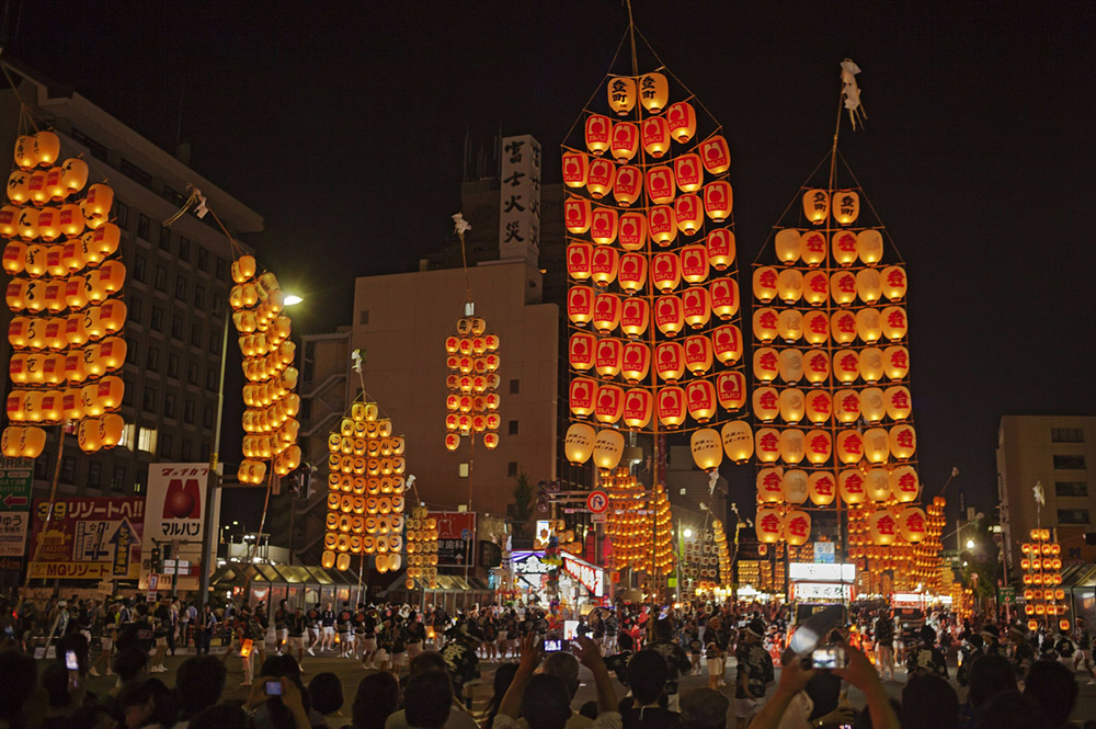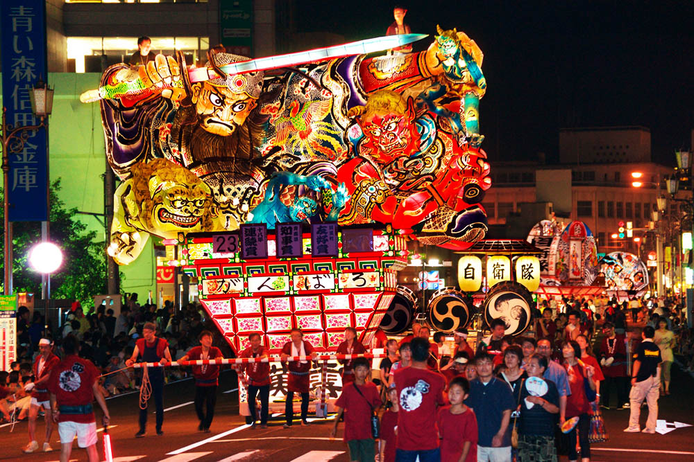 睡魔祭也叫佞武多祭。逾20个灯笼挂在空中,像飘浮着一般,最大的灯笼可是有到5公尺高。大家会在市镇的街上游行,边走边有节奏地喊着,此外还有日本笛子与鼓一同演奏着庆典的乐曲,代表着在歌颂他们传说中的勇士以及一些历史人物。此游行还伴有约500-2000名舞者。青森睡魔祭每年都会吸引约3万名的人前来观赏。图片来源:东方ic