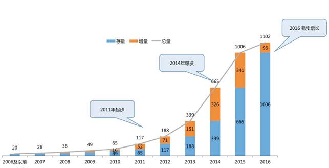 ▲2006-2016中国分享经济创业企业数量
