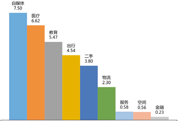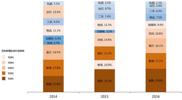 ▲近三年分享经济新增企业热门行业分布