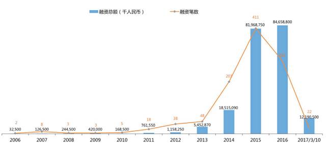 数据来源:IT桔子(截止2017年3月),腾讯研究院分析 注:不包括P2P网贷