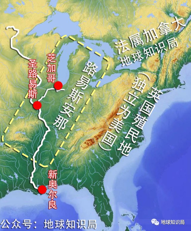 再加上当时法属的北美殖民地在墨西哥湾区和加拿大领地之间,有一个巨大的空当需要大河来连接,法国人就将密西西比河谷整个纳入囊中,宣称这是自己的领土。