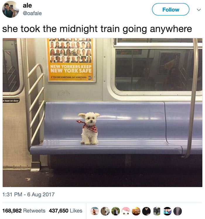 她乘着午夜的列车,驶向任何地方。——美国摇滚乐队 Journey 1981 年名曲 Don't Stop Believin'