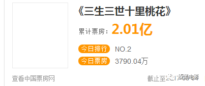 三生三世,我只为赴你之约,然而,纵使桃花十里,也依旧让我犯了尴尬癌。今天早上桃子搂了一眼电影票房,《三生三世十里桃花》以2.01亿位列no 2 的位置。影片上映首日票房已经1.7亿,这是今年除了《战狼2》以外,在工作日上映首日票房过亿的影片。