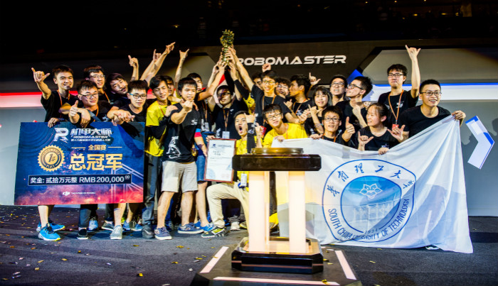 8月6日下午,由大疆创新主办的RoboMaster 2017机甲大师赛进行激烈的冠军争夺战后,华南理工大学的“华南虎”队伍问鼎冠军。