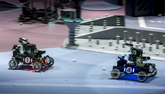 比赛中步兵机器人和英雄机器人是主要的进攻单元,这两种机器人利用大小两种炮弹攻击敌方车辆四周的传感器。工程机器人是今年大赛中新增的重要元素,虽然无法攻击,但工程机器人可治愈及辅助其他机器人。如果工程机器人成功向场地中央的机关立柱放置障碍块并同时激活5个机关立柱,则战队可直接获胜。飞行机器人要通过精准的操作承担全队辅助的角色。