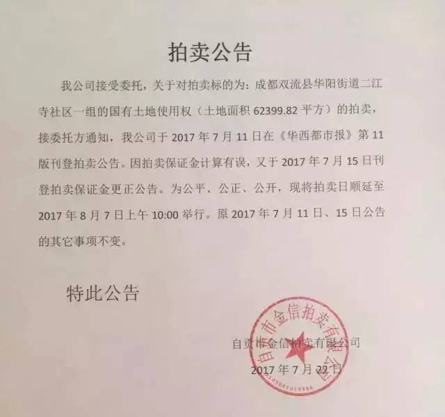 拍卖延期举行 交房时间继续推后