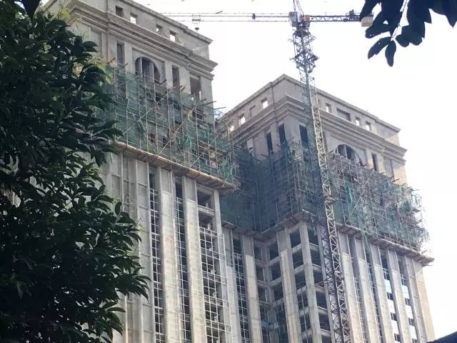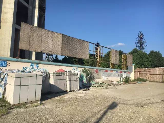 据现场施工队队长描述:“因建筑基底泡水时间过长,安全生产问题不容忽视,现在我们已逐渐将建筑外围绿幕拆掉,对建筑进行详细的安全勘察,等检查完毕后就可以开工。”