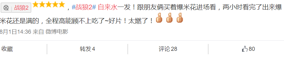 《战狼2》的自来水显然是由于影片本身质量过关,加之观众爱国情绪受到鼓舞,从而《战狼2》在全国引发了群体效应,甚至附带一部分从众效应。
