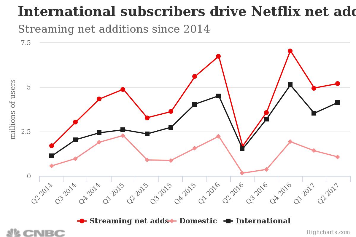 以下Netflix净增加流媒体海外用户变化图表来自CNBC。