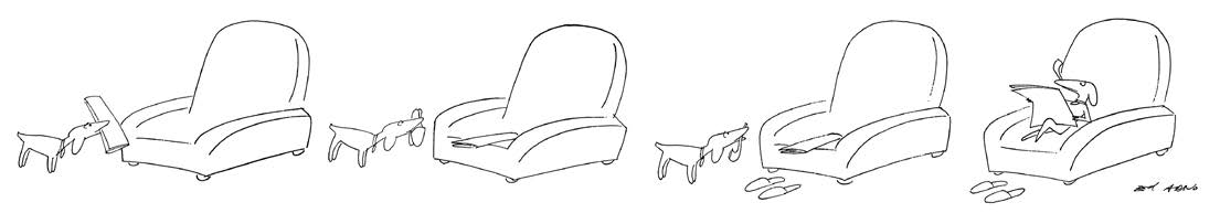 在这十年间,《纽约客》的漫画几乎很少展现类似伍德斯托克摇滚音乐节或者五角大楼游行这样的大事件。漫画家们对人与人之间不受外界影响的关系更感兴趣。通常,这些漫画家会重现杂志创刊初期的一些漫画的主题,就像好莱坞的导演反复拍摄“老西部”一样——疯狂的科学家、来自外太空的访客、打击自己古板的或自命不凡的丈夫的明智妻子、荒无人烟的孤岛、到达天国之门的人、面对法官的被告人,当然了,还有会说话的动物。