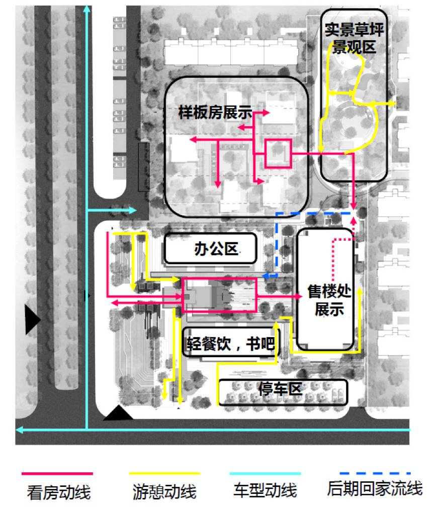 下面是鲁能某项目的四种动线的示意图,互不交叉,各安其职。
