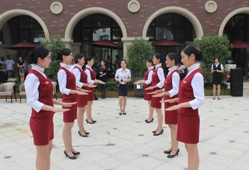现在很多住宅项目开始提自己是“酒店式管理”。并进行大量标准化训练。下面这是华润某住宅项目训练的场景。