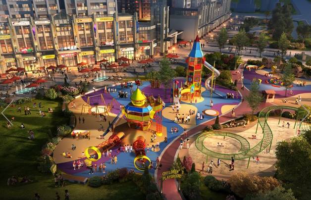 比如领地海纳时代,是西南首座童宠主题商业街区。餐饮、萌宠、购物、教育、娱乐等方面都有,外场空间则打造了儿童、宠物的乐园。如下图所示,做起来以后非常火爆。