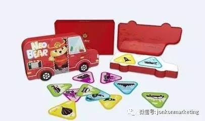 渠道方面,采取避开KA卖场,走母婴、玩具专营精准渠道路线,同时将线上线下结合,实现O2O销售模式,线下覆盖了民营连锁店、玩具专卖店、图书直供渠道、连锁超市甚至机场等消费场景,满足了儿童逛街购物时的即时消费需求;线上涵盖天猫、京东等主要电商平台,有微商销售渠道,方便的消费者随时购买,还与春秋航空达成合作,开启空中售货模式。