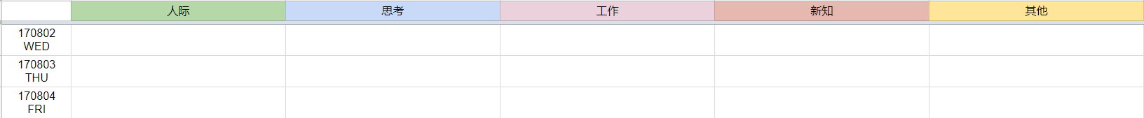 推荐的平台,是Google 表格。用表格的形式做日志,非常容易格式化,便于阅读和记录;而用 Google 表格,好处是云端同步,在不同终端上,打开网页就能用。