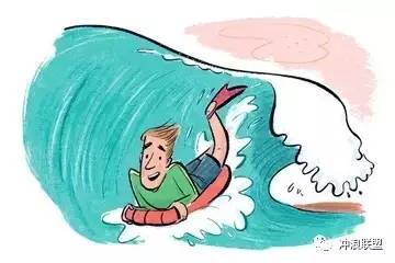 摔也要摔得正确。如果你冲浪的过程中摔下来了,记得使出全身力气将冲浪板推开,防止摔下来的时候撞上冲浪板。