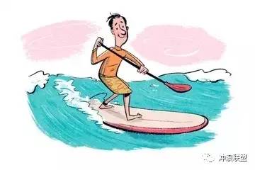 变换站姿。划桨时应面朝前,两脚与肩同宽分立。但在你开始冲上一个浪头的时候应改为侧立站姿,后脚放在接近冲浪板尾部的位置。