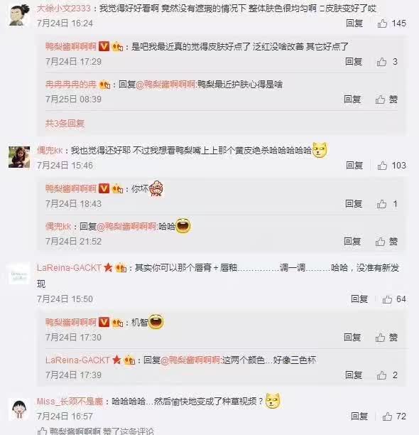 就如互赠雷品挑战一样,看完视频之后依旧有很多人被里面的化妆品种草,甚至这些”雷品“激发了更多人的化妆搭配方法。而美妆博主在上妆时的技巧也是我们学习的一个点,可谓是一举多得。