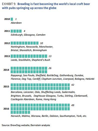 截止 2015年, BrewDog 共有 540名员工和 3.2万名股东。公司年复合增长率增长至 44%,帮助其成为苏格兰最大的独立精酿啤酒生产商,并扩展到了瑞典、日本和美国。