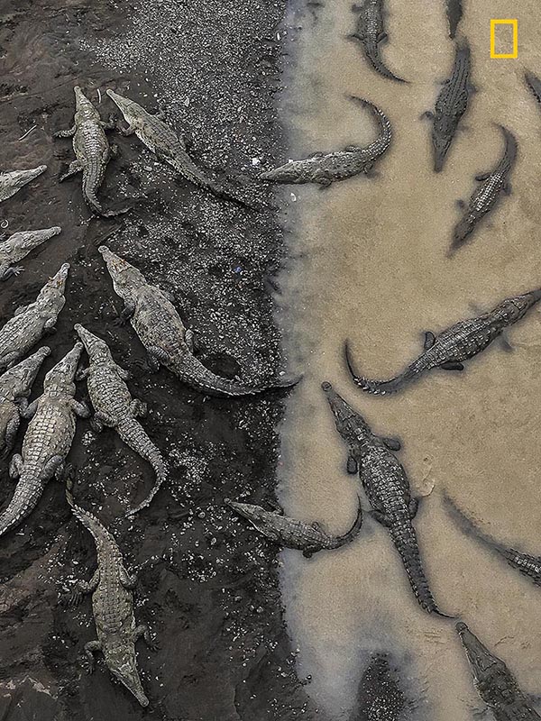 哥斯达黎加丨在Tarcoles河畔聚集着30到40条鳄鱼,它们在泥水中缓慢地沉浮、谨慎地注视着前方。(摄影师:Tarun Sinha)