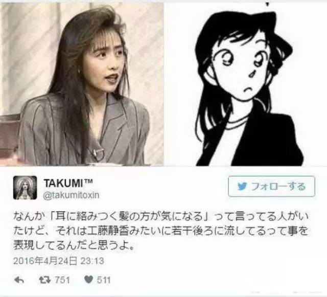 日本网友曾指出,毛利兰的发型应该是参考自工藤静香