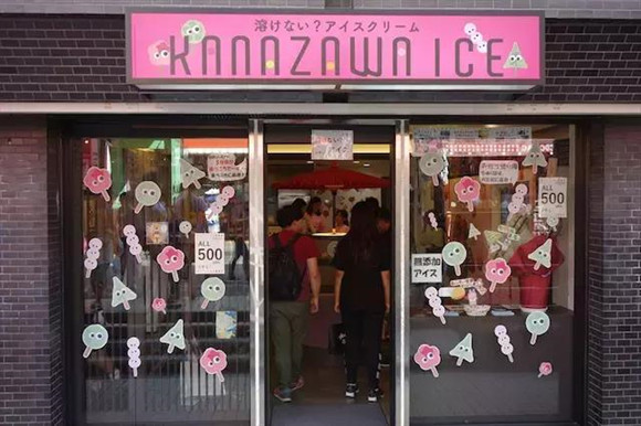 在没有多酚液体添加进冰淇淋之前,人们往往通过改变冰淇淋的外形来延缓它们的融化速度。一般来说,圆形的雪糕最不易融化,因为没有多余的棱角且接触空气的面积均匀。但在Kanazawa Ice冰淇淋店里,任何形状的冰淇淋都不怕被融化,三角形、动物形状比比皆是。