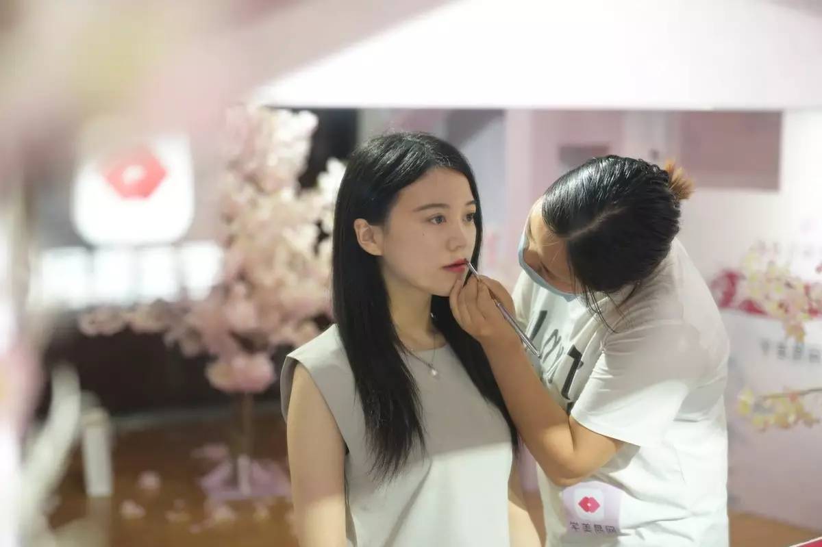 (化妆师在为粉丝化桃花妆)
