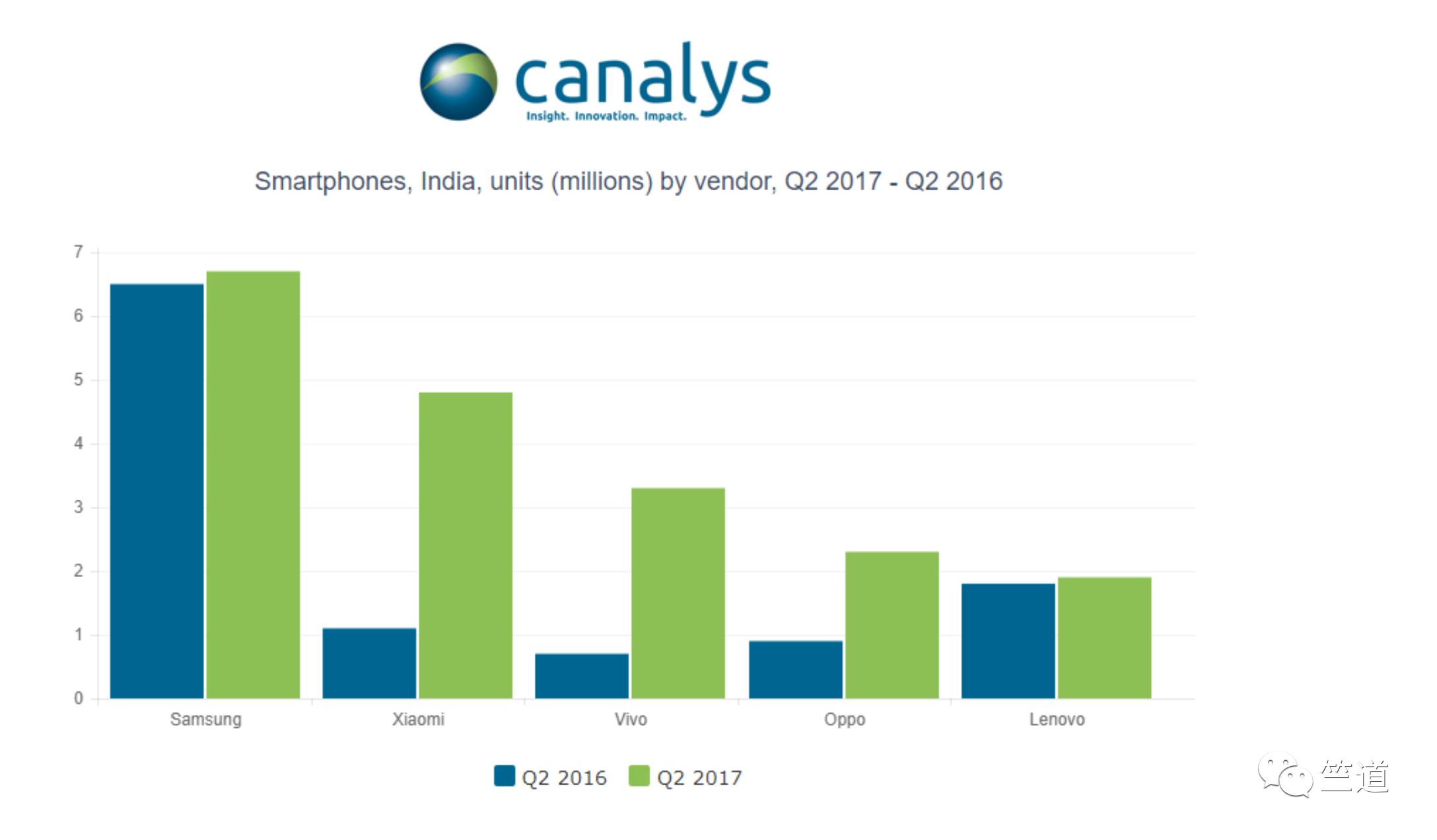 其中,小米、Vivo甚至出现了明显高于去年同时的出货量大幅增长,小米在今年二季度的出货量为480万部,Vivo的出货量为340万部。出货量下降的厂商主要是Micromax、Intex、Lava等印度本土手机品牌。