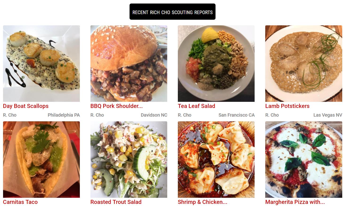 目前,他在美食评论网站上更新了68张食物图片,并且按照五个等级予以评价。不过,呈现于页面上并不是传统的“几星级”标志,而是用印有Big Time Bites的篮球图案代替了星星。同时,每个等级还对照以“替补”、“参赛者”、“全明星”、“核心球员”与“名人堂”等级。而价格也不是用美元符号表示,则换成了小型斯伯丁篮球。