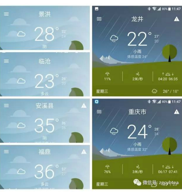 这些年,你开始追山,跟着风的季节。你开始关注天气预报。你的手机天气预报城市变成了下面这个模样: