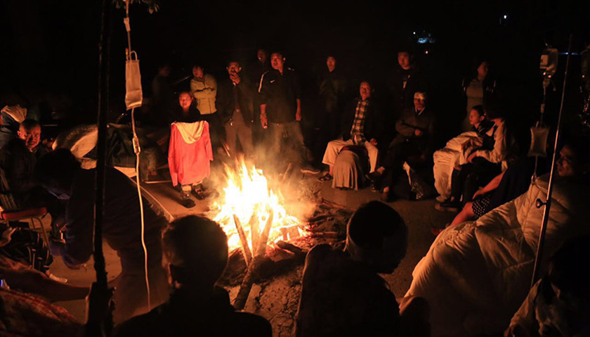距离震中80公里之外,松潘县川主寺镇同样挑灯夜战。那里是九寨沟前往成都方向的必经之路。