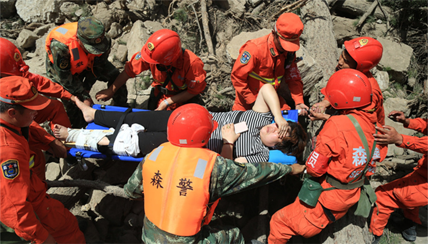 救援医疗人员在漳扎片区从下往上进行救援,采取“先重后轻”原则,对危急重患者实施现场救治,保证生命体征及时转院到县人民医院或中藏医院进行手术治疗。