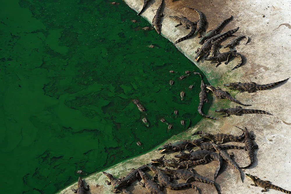 当地时间2017年5月23日,泰国阿育他亚府,西阿育他亚养殖场里的鳄鱼。