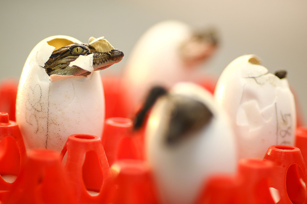 当地时间2017年5月20日,泰国春武里省,是拉差鳄鱼湖的小鳄鱼正在破壳而出。