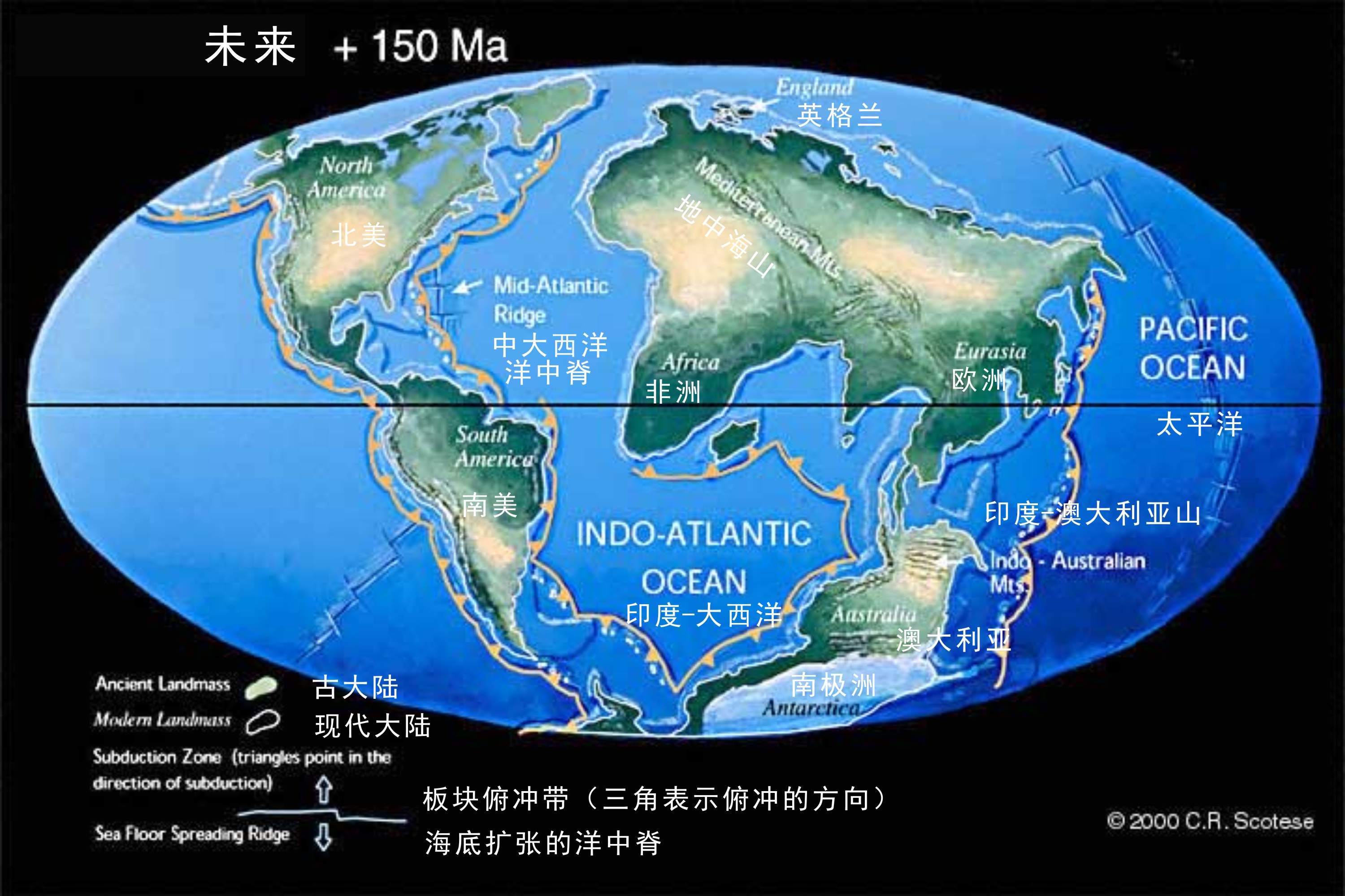 岩石圈演化图(356 Ma-未来150 Ma,Scotese, 1997)
