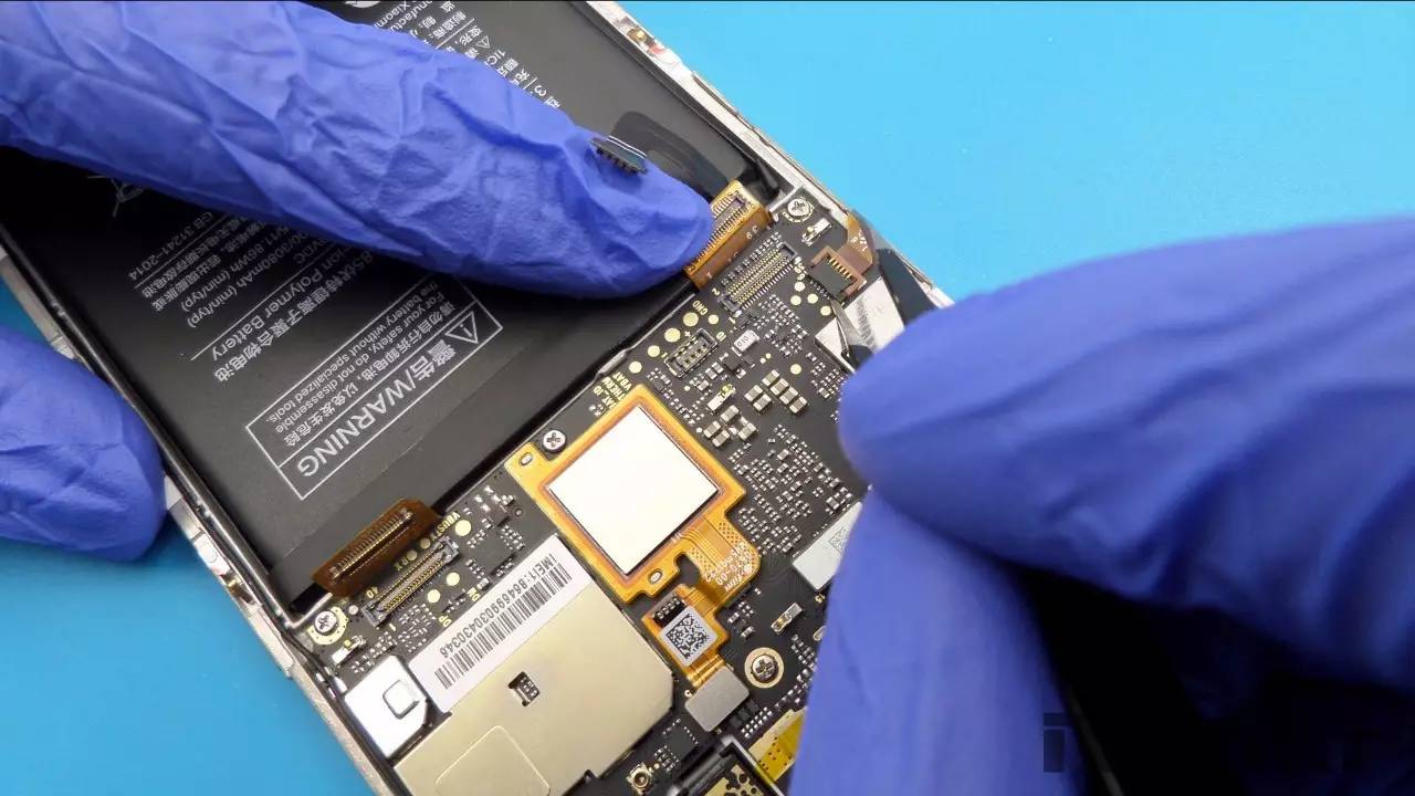 打开后盖的一瞬间多少有点意外,因为小米5X是后置指纹识别,一般这种指纹模组都会集成在后盖内侧,然后通过排线与主板连接,每次都要很小心。可小米5X并非如此,它的指纹模组直接集成在了主板上,这种还是非常少见的,记得上次看到类似设计的手机还是来自于纽曼的产品,貌似早期带指纹的手机有几款是这样的。
