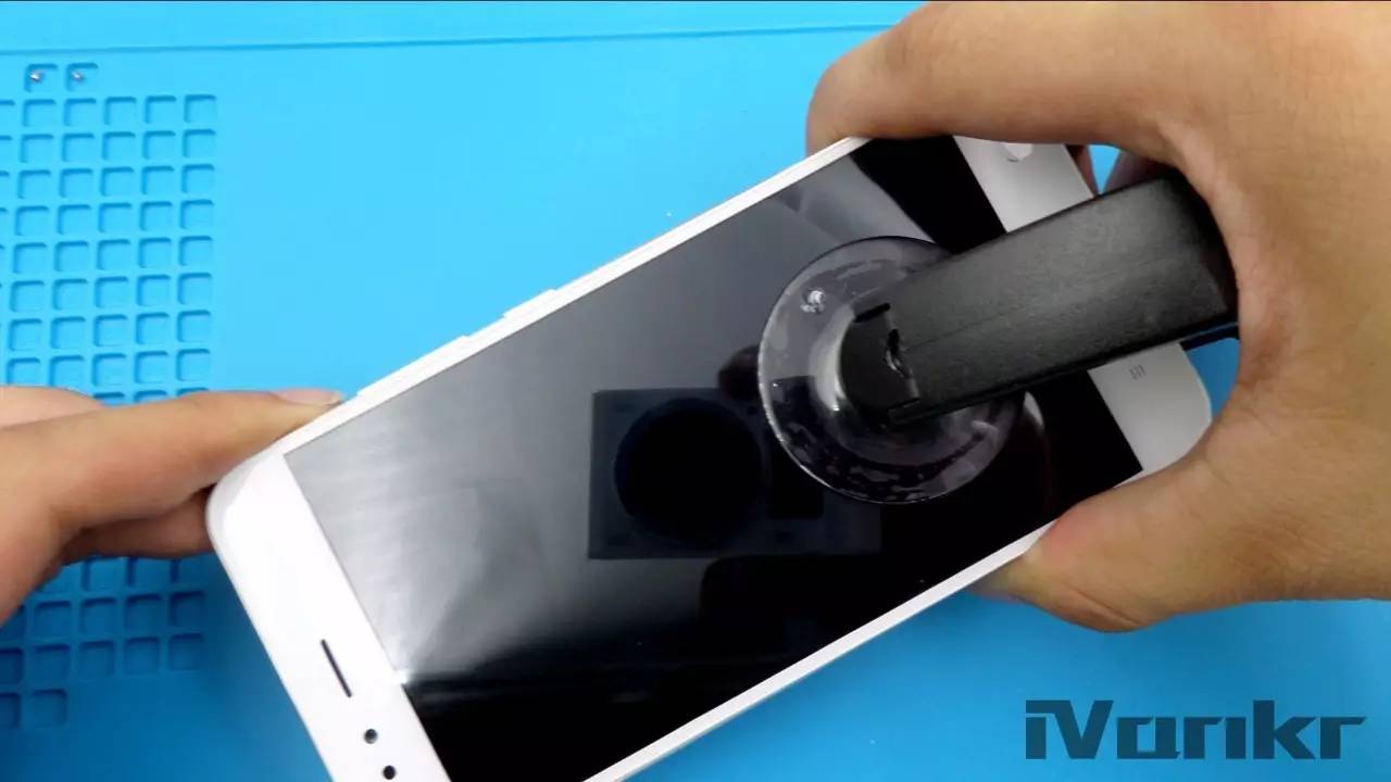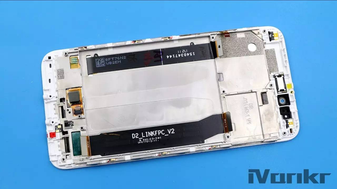 小米5X的外观属于时下的大众脸类型,从结构的角度来说,没什么特殊之处,拆解也是老套路,取出SIM卡槽,拧下底部的两颗固定螺丝,便可以分离金属外壳和屏幕总成。今年拆的类似结构的手机,都有一个特点,那就是后盖难开,原因之前也说过,金属外壳与屏幕总成扣合太紧。不过,小米5X却是个例外,吸盘可以很容易打开一个缝隙,然后用指甲就能拆下后盖。