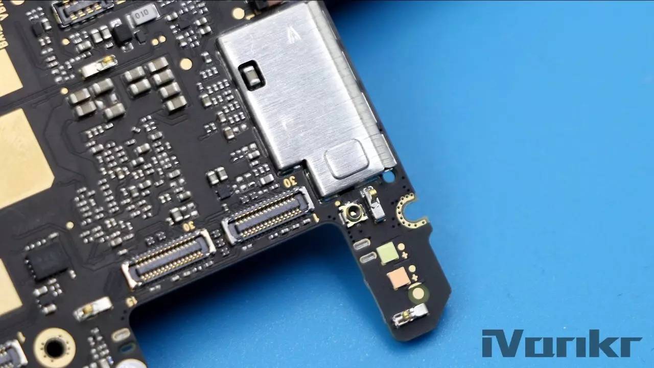 剩下的就是按部就班,这种老套路真是熟得不能再熟了。来看下主板部分,这两年小米愈发良心,亦或者是因为首款主攻线下的原因,小米5X采用了黑色PCB,虽说不同颜色对于功能并没什么影响,但多少还是有一定成本差,另外就是看着高端点,主板PCB的集成度也相对较高。可以看到,大部分连接器都是BTB,但音量键和触控单元用了ZIF,也是出于成本控制的考虑。