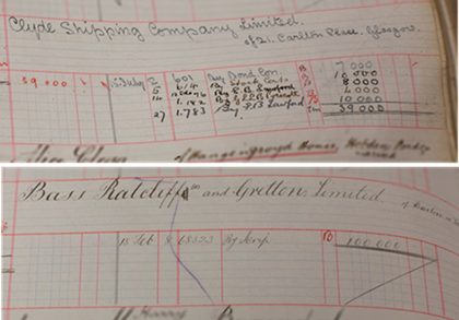 这批债券的买家包括投资家、公司和个人,例如富人们、酿酒厂Bass Brewers以及一些运输公司(如下图)。英国央行援引数据称,该债券的注册购买人数仅为97635,还不到潜在投资者数量的10%,多数买家购买了100英镑的债券,一半买家则购买了最高200英镑的债券,还有2%的买家所购债券规模占总量的40%。